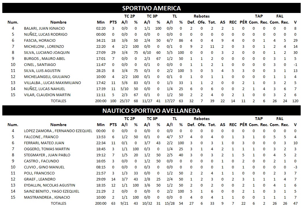 SPORTIVO AMÉRICA 100 : 63 NÁUTICO