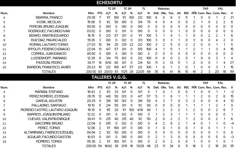 También en encuentro disputado este domingo , por la zona 1 ECHESORTU superó a TALLERES RPB 83 : 54 y se ubica cerca de ingresar a Cuartos