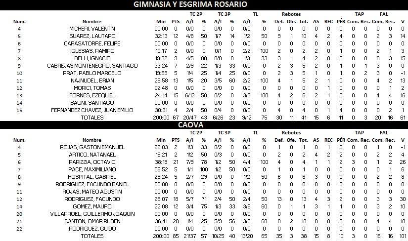 GIMNASIA Y ESGRIMA 67 : 85 CAOVA