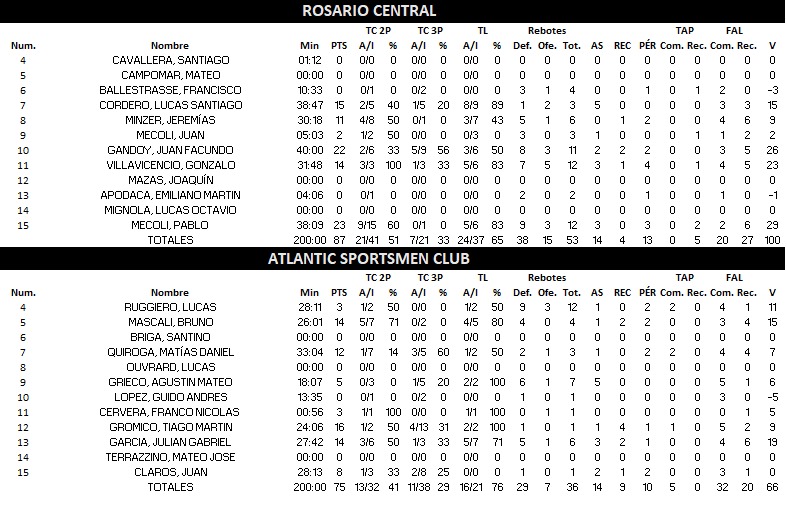 ROSARIO CENTRAL 87 : 75 ATLANTIC