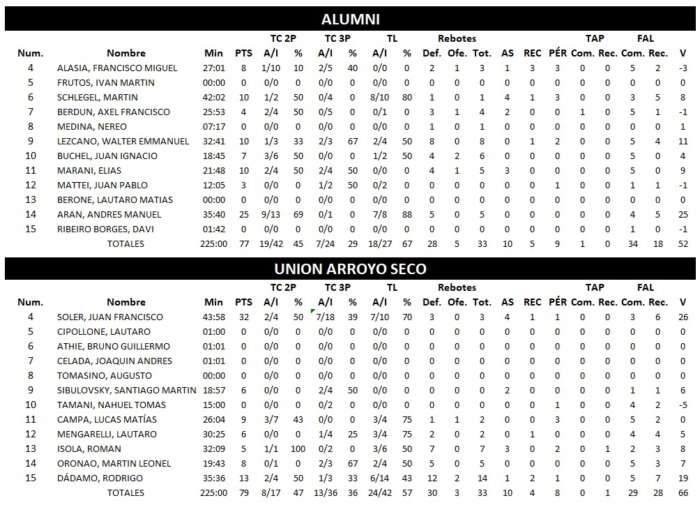 ALUMNI de Casilda (0) 77 : 79 (1) UNIóN de Arroyo Seco