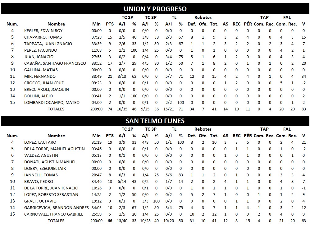 UNIóN Y PROGRESO (1) 74 : 66 (0) SAN TELMO de Funes