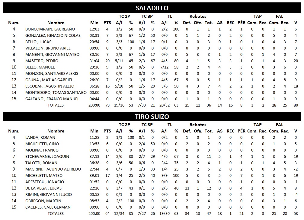 SALADILLO (1) 79 : 64 (1) TIRO SUIZO