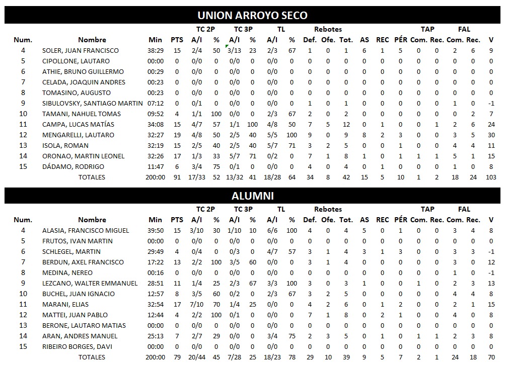 UNIÓN de Arroyo Seco (2) 91 : 79 (0) ALUMNI de Casilda