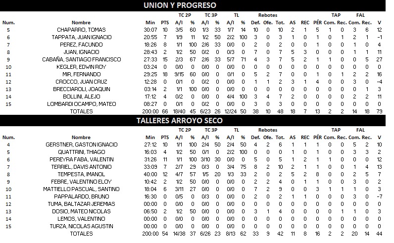 Unión y Progreso (1) 66 : 54 (0) Talleres de Arroyo Seco