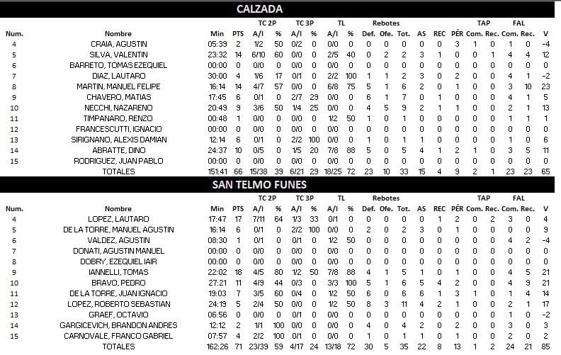 Calzada (0) 66 : 71 (1) San Telmo de Funes