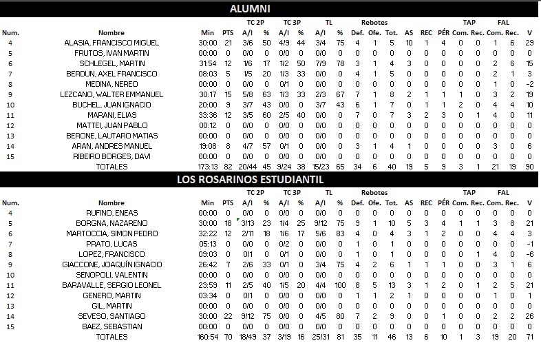 Alumni de Casilda (1) 82 : 70 (0) Los Rosarinos Estudiantil