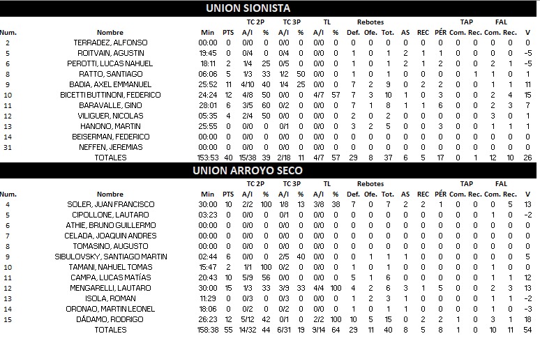 USAR (0) 40 : 55 (1) Unión de Arroyo Seco