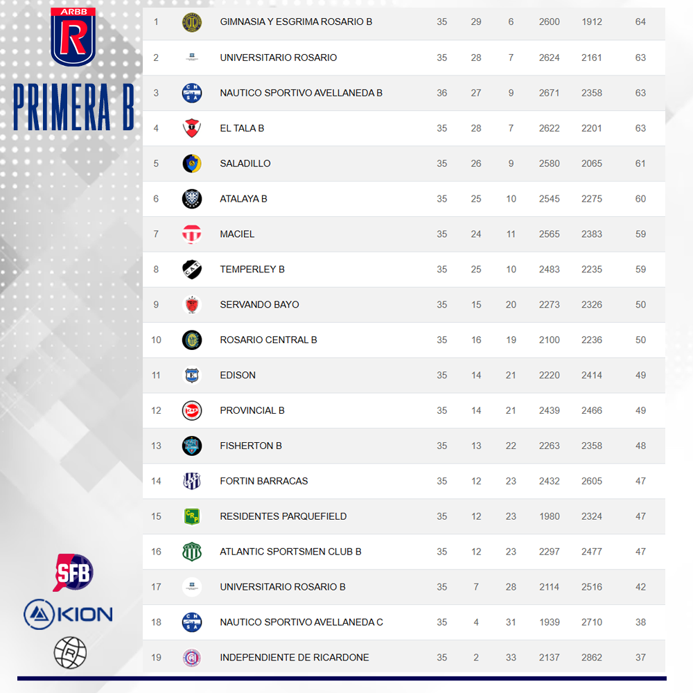 Además, Saladillo se impuso ante Servando Bayo por 58 : 71, Residentes Parquefield derrotó a Temperley B 57 : 55, Provincial B superó a Atlantic B 62 : 82 y Atalaya B hizo lo propio frente a Universitario B 60 : 63. Universitario venció como visitante a Edison 57 : 82, mientras que Náutico B celebró ante Maciel 70 : 67. Por su parte, Fisherton goleó a Independiente de Ricardone 103 : 58, y Rosario Central B cerró la jornada con un triunfo 60 : 52 frente a Fortín Barracas. Quedó libre el ya descendido Náutico C