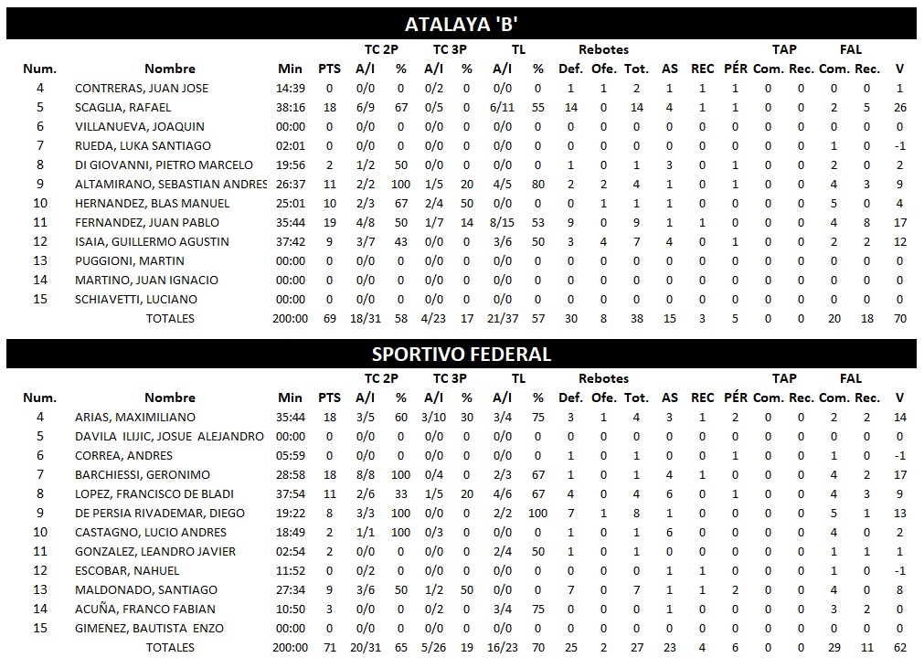 PRIMERA B SEMIFINALES JUEGO 2 ATALAYA B (0) 69 : 71 (2) SPORTIVO FEDERAL