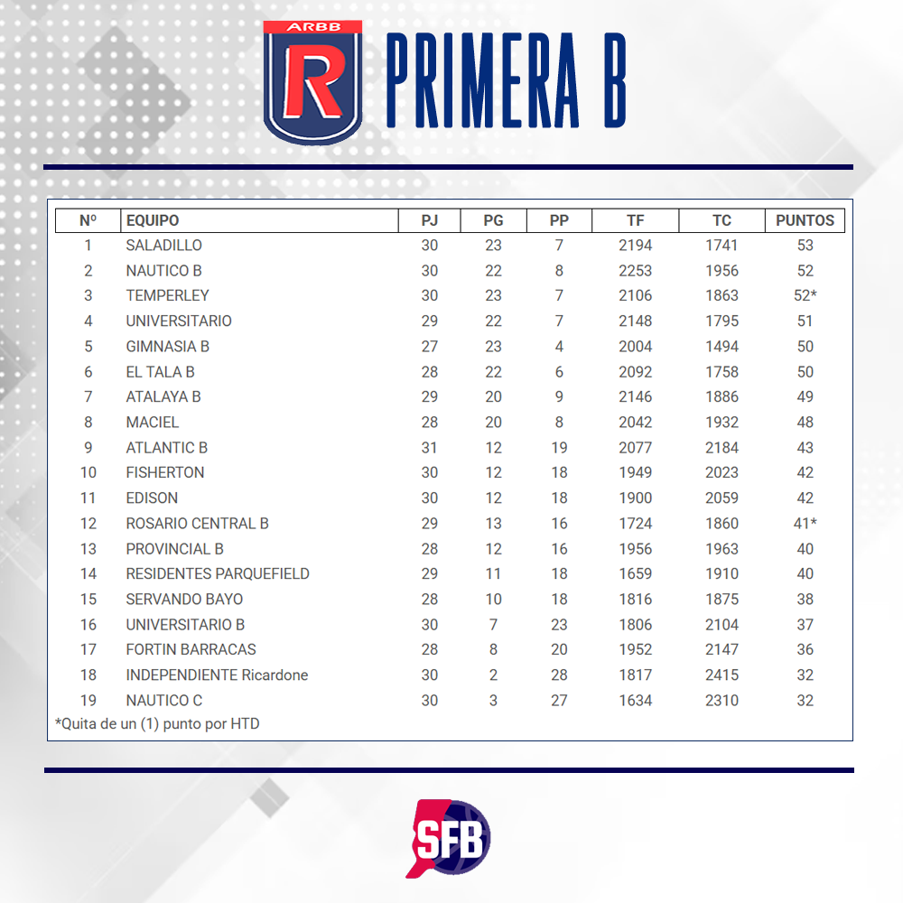 En la 32ª fecha de la Primera B, Gimnasia y Esgrima B volvió a brillar y derrotó con autoridad a Atlantic por 75 : 47, logrando así su décima victoria consecutiva. Los mensanas, que todavía tienen tres partidos pendientes, se ubican a solo tres puntos del líder Saladillo. Además, El Tala B superó a Servando Bayo 64 : 56.