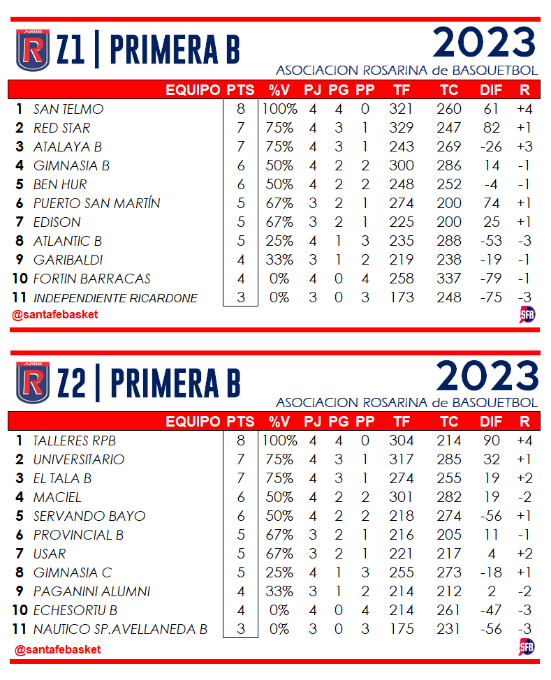 Por su parte también hubo acción por la cuarta fecha de la Zona 2 de la Primera B con los triunfos de TALLERES RPB de Villa Gobernador Gálvez ante ECHESORTU B 68:38 y de EL TALA B frente a PAGANINI ALUMNI 67:60