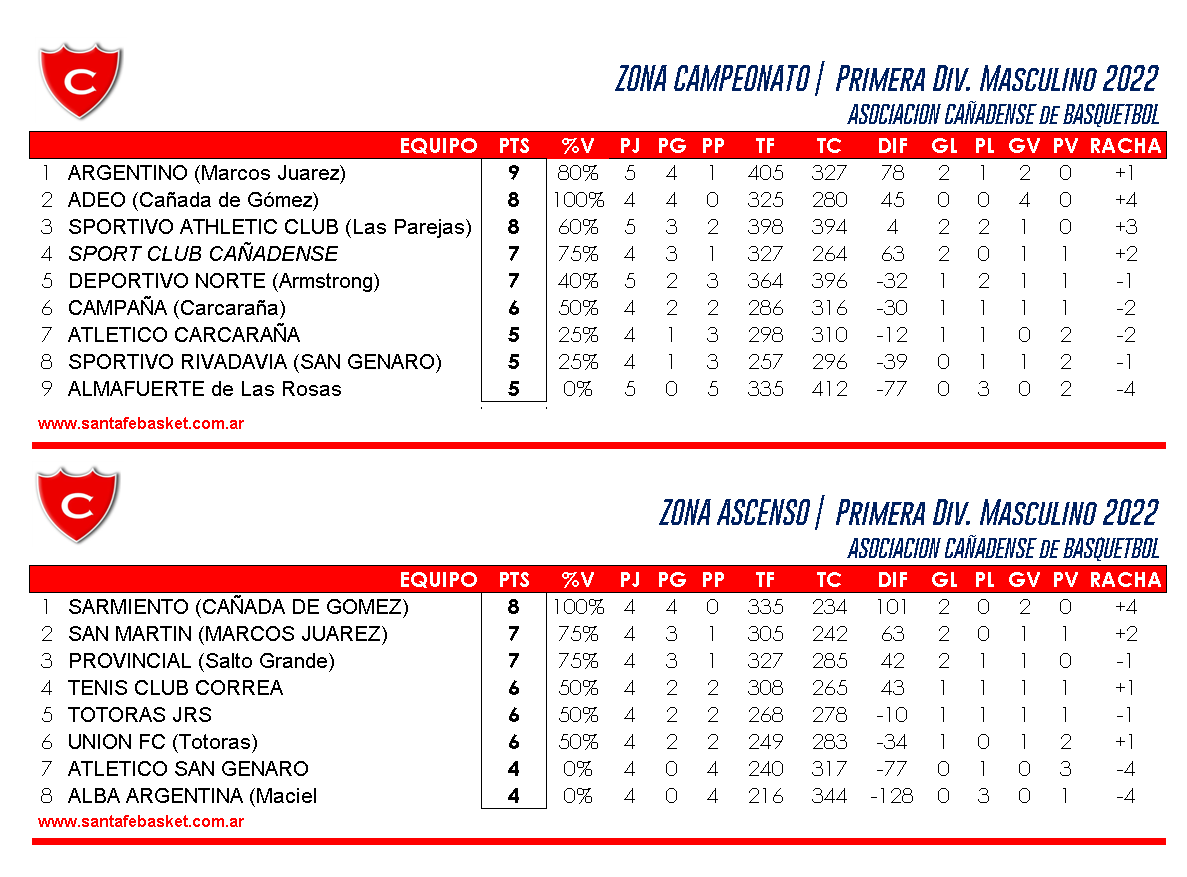 Se jugó la 5ra fecha de la zona Campeonato con victorias de los cañadenses Sport , ADEO , Sportivo de Las Parejas y Argentino de Marcos Juárez.