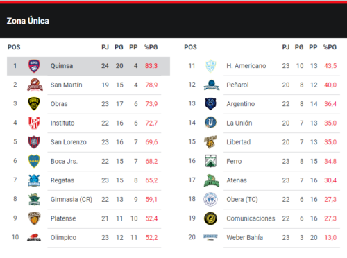 Pese a los encuentros que adeuda por los motivos antes expresados , San Martín conserva la segunda colocación en las posiciones generales de la Liga. Atenas continua entre los últimos cuatro de la clasificación.
