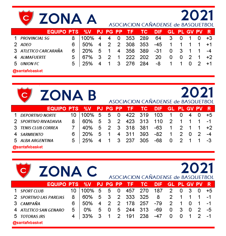 La zona C tiene a Sport Club como único lider, el Celeste le ganó a Sportivo de Las Parejas en la propia Fortaleza del Lobo con marcador de 61 a 68.