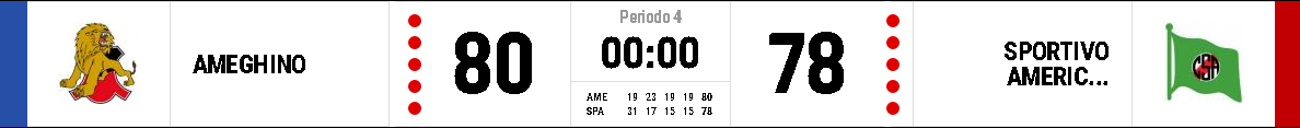 (80) – AMEGHINO de Villa María : Joaquín Valinotti 12, Lautaro Fraga 11, Jonathan Torresi 11, Yoanki Mencia 11 , Juan Abeiro 18 (fi), Gaston Essengue 2, Mateo Beigier 10, Bruno Giaccone 0, Álvaro Carrafá 5 – DT : Pablo Castro.-