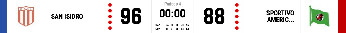 SAN ISIDRO (96) : Oberto 18, Zezular 1, Aliende 10, Johnson 19, Gómez Quinteros 11 (fi) , Ligorria 0, Assum 13, Solari 19, Vergara 0, Romero 5 – DT : Sebastián Torre.-