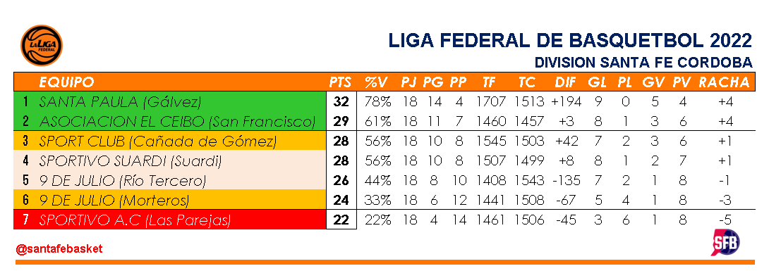 SPORTIVO A.C de Las Parejas (75):Maximiliano Ríos 0; Alexis Mato 9; Juan Pablo Pedemonte 5;Pedro Amoros 14;Lahuel Silva 22(FI) Arik Levin 17;Galo Marín 4; Néstor López 4. – DT: Aníbal Pisani.-