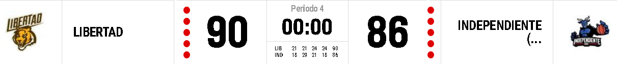 Libertad (90): M. Alonso 16, Quiroga 6, Eydallín 13, Wall 6 y Simondi 16 (fi) Barrera 7, Lombardi 0, M. Pérez 4, Rupcic 12 y Giménez 10. – DT : Sebastián Porta.-