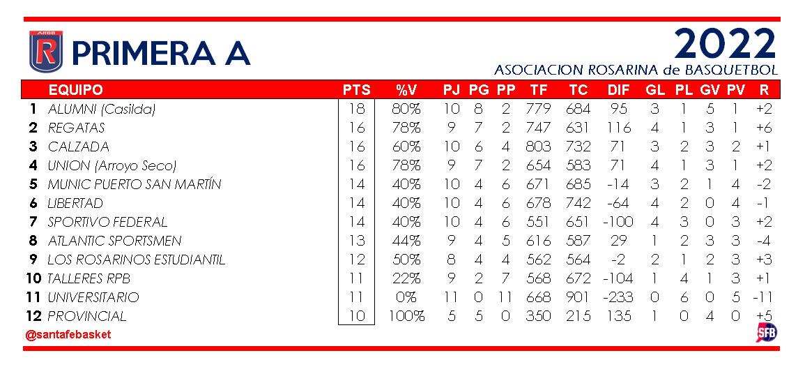 Se puso en marcha la 11° fecha de la Primera A , ganaron Calzada sobre Municipalidad de Puerto San Martín 82 : 79 , Unión de Arroyo Seco ante Libertad 97 : 75 y Sportivo Federal frente a Universitario 70 : 57.
