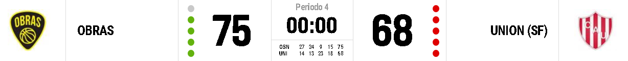 Gastón Bertona fue desde la faceta anotadora lo mejor de la escuadra santafesina, el sancristobalense anotó 23 puntos secundado por 15 de Cylla y 9 de Jaime. En Obras Berra terminó con 9 conversiones y 7 rebotes.