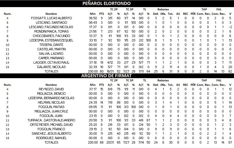 Atlético Elortondo 62 : 47 Club Ciudad