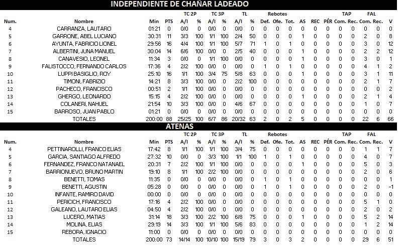 Independiente 88 : 73 Deportivo Atenas