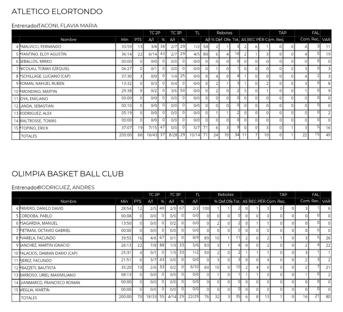 ATLÉTICO ELORTONDO (1) 66 : 70 (2) OLIMPIA