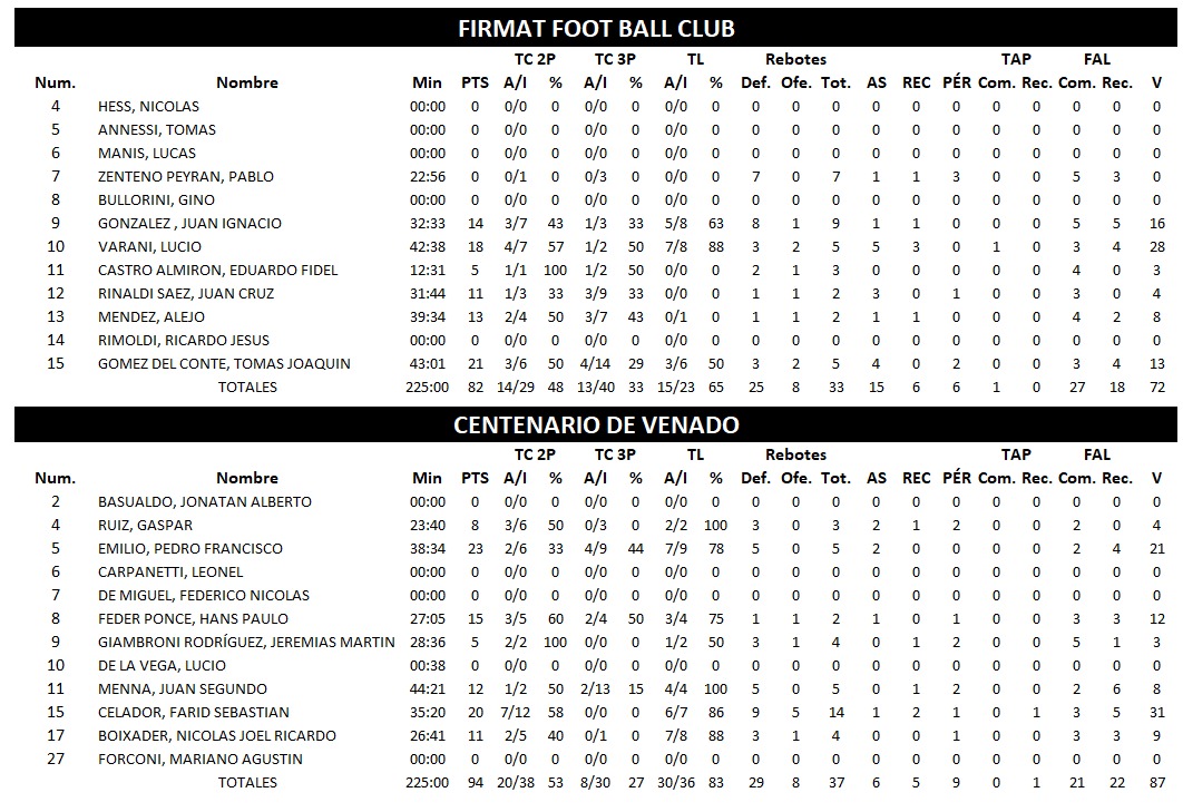 PRE FEDERAL VENADENSE CUARTOS DE FINAL FIRMAT FBC (0) 82 : 94 (1) CENTENARIO FBBCYD