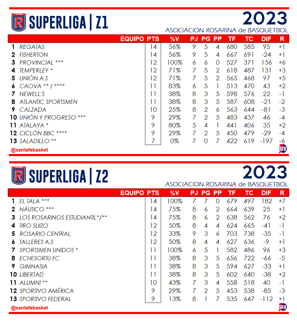 ECHESORTU FC B (69): Tiberio 13, Martoccia 5, Rubino 4, Correa 1, Cáceres 15, Feresín 13, Zanoni 16, Sosa 2. – DT: Cristian Sbarra.